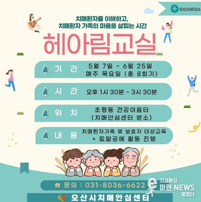 이런뉴스(e-runnews) 김삼성 기자 | 오산시치매안심센터는 치매 환자와 가족의 정서적 부담을 완화하고 돌봄 역량 강화를 지원하기 위해 치매 가족 대상 프로그램 '헤아림 교실' 2기 참여자를 모집한다고 밝혔다.
