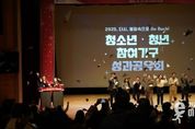 이런뉴스(e-runnews) 김삼성 기자 | 수원시청소년청년재단은 2025년 12월 20일, 청소년‧청년 참여기구 성과공유회를 성황리에 개최했다. 이번 성과공유회는‘2025. 다시 열정속으로 Go Back!’이라는 슬로건 아래, 재단 소속 40개 참여기구의 약 350명의 청소년‧청년이 참여한 가운데 한 해 동안의 활동 성과를 공유하고 자긍심을 고취하는 자리로 마련됐다. 또한 청소년 활동의 동력을 재충전하고 지속 가능한 참여 동기를 부여하는 의미 있는 시간으로 운영됐다. 사전 행사로는 △대형 포토존 △열정 고백 담벼락 △열정 고백 놀이터 등 다양한 체험활동이 진행됐다. 본 행사에서는 △우수 청소년‧청년 표창장 수여 △축사 및 격려사 △참여‧연대 퍼포먼스 △동아리 열정 스테이지 등이 이어지고, 청소년‧청년 참여기구 활동에 대한 격려와 성과를 함께 나누는 시간을 가졌다. 이재준 수원특례시장은 “청소년‧청년들의 한 해 동안 지역과 사회를 위해 주도적으로 활동하는 모습에서 대한민국의 밝은 미래를 볼 수 있었다.”며, “앞으로도 수원시는 청소년‧청년들을 위한 다양한 지원을 아끼지 않고 지속적으로 응원하겠다.”