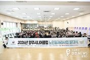 이런뉴스(e-runnews) 김삼성 기자 | 양주시가 지난 12일 옥정호수도서관 3층 예술극장에서 양주시니어클럽 주관으로 ‘2026년 노인일자리 및 사회활동지원사업 발대식’을 개최했다. 이날 행사에는 노인일자리 참여 어르신과 관계자 등 180여 명이 참석해 성황을 이뤘다. 행사는 공립리첼아이어린이집 어린이 사물놀이단의 식전공연을 시작으로 ▲후원금 전달식 ▲관장 인사말 ▲내빈 축사 ▲개회 선포 ▲선언문 낭독 ▲피켓 행진 ▲단체사진 촬영 순으로 진행됐다. 또한 양주시니어클럽 공동체사업단 카페 매장의 수익금 일부를 모아 조성한 후원금 200만 원을 양주시사회복지협의회에 전달하는 행사도 함께 열렸다. 전달된 후원금은 관내 복지사각지대 대상 긴급지원에 사용될 예정이다. 서의동 양주시니어클럽 관장은 “참여 어르신들께 자긍심과 안전한 근무 환경을 제공하는 데 최선을 다하겠다”며, “특히 공동체사업단 카페 매장의 수익금을 지역사회 환원 사업에 활용해 어르신들의 사회참여가 실질적인 성과로 이어지도록 꾸준히 노력하겠다”고 말했다. 양주시 관계자는 “노인일자리사업은 어르신들의 활기찬 노후를 보장하고 지역사회 발전을 이