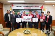 이런뉴스(e-runnews) 김삼성 기자 | 김해FC가 김해축협과 손을 잡고 2026시즌의 힘찬 레이스를 시작한다. 김해FC는 31일 오전 10시 김해시청에서 구단주 홍태용 김해시장과 김해축협 송태영 조합장이 참석한 가운데 공식 후원 협약식을 개최했다. 김해축협은 ‘천하1품’ 한우와 ‘산들에참포크’ 등 장관상을 휩쓴 명품 브랜드를 가진 국내 축산업 발전의 선두주자로 국민 건강을 책임지고 있는 지역 대표 금융·축산 기관이다. 이번 협약은 김해축협의 새 슬로건인 ‘든든한 축산 동반자, 김해축협’ 정신을 바탕으로 지역 상생의 의미가 크다. 김해축협은 김해FC의 공식 파트너로서 구단의 안정적인 운영을 돕고, 김해FC는 경기력을 통해 김해축협의 브랜드 가치를 높이는 ‘윈-윈(Win-Win)’ 전략을 펼친다. 송태영 조합장은 “우리 시 첫 프로축구단의 탄생에 시민들의 기대가 큰 만큼, 팬들의 뜨거운 열기에 부응하기 위해 지원을 결심했다”며“김해축협이 그 여정에 동행하게 되어 기쁘고 앞으로 김해FC가 승승장구할 수 있도록 아낌없는 응원과 지원을 이어가겠다”고 말했다. 홍태용 시장은 “김해축협은 우리 시가 축산업