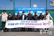 이런뉴스(e-runnews) 김삼성 기자 | 광주광역시체육회(회장 전갑수)는 호남권 중심 광역 오픈대회인 ‘2026 순천오픈 테니스대회’ 현장을 찾아 광주 연고 선수단과 관계자를 격려했다. 이번 대회는 전국 각지에서 약 260여 명의 동호인 및 선수들이 참가한 가운데 성황리에 진행되며, 남녀 단식과 동호인부 등 다양한 종목에서 열띤 경기가 펼쳐진다. 특히 호남권을 비롯한 10여 개 시·군에서 참가해 지역 간 스포츠 교류의 장으로서 의미를 더했다. 광주 대표로 참가하는 한국도로공사 테니스팀은 2019년에 창단과 함께 광주광역시와 연고 협약을 맺고 7년간 동행을 이어오고 있다. 김남훈 감독과 위휘원 선수 등 선수단 6명은 꾸준한 성과를 내며 한국 실업 테니스의 중심으로 자리잡고 있다. 이날 현장을 방문한 전갑수 광주광역시체육회장과 김광희 광주테니스협회장은 주요 경기장을 둘러보며 경기를 참관하고, 선수, 지도자들과 직접 소통하는 시간을 가졌다. 또한 대회 운영 관계자들의 노고를 격려하며 안전하고 공정한 경기 진행을 부탁했다. 전갑수 체육회장은 “광주를 대표하여 지역 연고의 가치를 지켜주는 한국도로공사 테