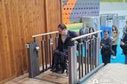 이런뉴스(e-runnews) 김삼성 기자 | 경기도의회 보건복지위원회 박재용 의원(더불어민주당, 비례)은 9일, 수원시 소재 파장초등학교와 영일중학교에서 학교 무대 접근성 개선시설 체험활동을 진행했다. 이번 활동은 그동안 이어져 온 체험형 접근성 점검(2023년 저상버스 체험, 2024년 시각장애 체험)의 일환으로 올해는 교육 현장의 환경을 살펴보고 개선방향을 모색하기 위해 추진됐다. 박재용 의원은 “이번 행사는 학교 체육관 및 강당 무대 등 계단 중심 구조로 인해 장애인의 접근이 제한되는 현실을 직접 체험하고, 교육현장의 접근성 개선 필요성에 대한 공감대를 형성하기 위해 마련됐다”고 밝혔다. 이번 체험활동에는 경기도교육청 학교안전과, 경기도장애인편의증진기술지원센터, 학교 관계자 등이 참석한 가운데 무대에 설치된 계단겸용 휠체어 리프트를 직접 조작하며 이용 과정과 특성을 살펴보고 개선 방향을 논의했다. 박재용 의원은 “현재 많은 학교에서 계단 이용이 어려운 학생들이 무대에 오르기 위해 별도의 우회 동선을 이용해야 하는 등 교육활동에 동등하게 참여하기 어려운 구조가 존재한다”며 “무대 경사로 설치 등