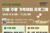 이런뉴스(e-runnews) 김삼성 기자 | 여주세종문화관광재단은 여주시립 폰박물관에서 2025년 11월 8일부터 11월 22일까지 매주 토요일 오후 2시, 온 가족이 함께 즐길 수 있는 ‘11월 주말 가족 체험 프로그램’을 운영한다고 밝혔다. 이번 프로그램의 주제는 ‘캐릭터는 살아 있다. -우드 큐브 만들기‘로 나무 재질의 큐브를 활용해 직접 꾸미고 조립하며 자신만의 캐릭터를 완성하는 체험 활동이다. 단순한 만들기를 넘어 창의력과 상상력을 자유롭게 발휘할 수 있으며 부모와 자녀가 함께 협동하고 소통하며 즐길 수 있는 가족 중심의 참여형 프로그램으로 구성됐다. 체험은 총 3회(11월 8일, 15일, 22일) 진행되며 매회 오후 2시에 시작된다. 참가 예약은 11월 4일 오전 10시부터 네이버 예약을 통해 가능하며 매회 20명을 선착순 모집한다. 이순열 이사장은 ”이번 11월 프로그램은 부모와 자녀가 함께 나무 블럭 큐브를 만들며 특별하고 즐거운 시간을 보낼 수 있도록 마련됐다. 이번 체험을 통해 가족이 함께 창의력을 발휘하고 서로에게 특별한 추억을 남기기를 바란다“고 전했다. 이번 프로그램은 여주시