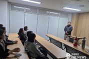 이런뉴스(e-runnews) 김삼성 기자 | 김포시는 10월 27일 오후 4시, 김포시 민원콜센터에서 고촌119안전센터와 합동으로 실제 화재 발생 상황을 가정한 실전형 소방훈련을 실시했다. 이번 훈련은 예기치 않은 화재 발생 시 신속하고 체계적인 초기 대응과 직원 안전 확보를 목표로 진행됐으며, 김포시 민원콜센터 직원과 고촌119안전센터 소방대원 등 20여 명이 참여했다. 훈련은 ▲화재 발생 시 초기 신고 및 대응 절차 ▲비상경보 발령과 대피 유도 ▲소화기 및 옥내소화전 사용 요령 ▲응급환자 발생 시 응급처치 방법 등 전 과정을 실습 위주로 점검하며 진행됐다. 특히 고촌119안전센터는 실제 화재 상황에서의 행동 요령을 구체적으로 설명하고, 대피로 확보, 연기 유입 방지 등 현실적인 대응 기법을 시연해 민원콜센터 직원들의 위기대응 능력 향상에 큰 도움을 줬다. 이에 김포시 민원콜센터 관계자 또한 “화재는 언제, 어디서 발생할지 예측할 수 없는 만큼 평소의 대비와 반복 훈련이 무엇보다 중요하다”며 “이번 훈련을 통해 상담사 모두가 ‘나와 동료, 그리고 시민의 안전’을 지키는 행동 요령을 몸에 익히는 계