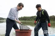 이런뉴스(e-runnews) 김삼성 기자 | 김동연 지사가 이번에는 달달투어 도중 ‘한탄강 청년어부’를 만났다. 바다에서 하는 어업 외에 내수면어업(육지의 하천, 호수 같은 담수에서 이뤄지는 어업)을 지원하겠다는 메시지였다. ‘한탄강 청년어부’는 구독자 17만 명을 자랑하는 유튜브 채널 이름이자 운영자인 1988년생 김은범씨의 닉네임이기도 하다. 오늘 김 지사는 임진강(임진강은 한탄강과 같은 줄기) 수위 점검을 한 뒤 조업을 마치고 돌아온 한탄강 청년어부의 고깃배 ‘왕건1호’에 성큼 올라섰다. 청년어부가 활어통 뚜껑을 열어 갓 잡아온 물고기를 뜰채로 들어올려 김 지사에게 보여줬다. 만선까지는 아니어도 활어통에는 물고기가 가득 담겨 있었다. 메기,쏘가리, 장어, 빠가사리 등도 보였다. 청년어부 김은범씨가 또 한 개의 활어통을 열자 참게가 그득했고 김 지사는 청년어부와 함께 어획한 참게를 자동차로 옮겨 실었다. 청년어부 김은범 씨는 한탄강(또는 임진강)에서 직접 잡은 물고기로 밀키트를 제작해 온라인 판매하고 있다. 전국에서 민물고기로 밀키트를 만든 것은 그가 처음이라고 한다. 한탄강 어획물로 다양한 가공식품으로 만들 꿈을 가지고 있다. 그러니 ‘한탄강 청년어부’