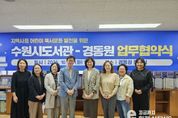 이런뉴스(e-runnews) 김삼성 기자 | 수원시도서관과 사회복지법인 경동원은 14일 경동원에서 ‘교류 협력을 위한 업무협약’을 체결했다. 공공도서관과 지역 복지기관이 함께 어린이의 독서 접근성을 높이고, 독서 친화적 성장환경을 조성하기 위한 협약이다. 수원시도서관은 경동원 어린이를 위한 독서 활동 프로그램과 도서 기부, 독서 서비스, 공연 등 다양한 독서문화 진흥 사업을 추진할 계획이다. 두 기관은 지역사회 어린이 보육 기관과 연계해 창의력과 표현력을 키울 수 있는 독서교육 프로그램을 운영하고, 교육·문화 협력을 위한 지속 가능한 교류 체계를 이어가기로 했다. ‘아이들을 위한 스토리텔링과 책놀이’ 프로그램을 10월 14일부터 11월 4일까지 매주 화요일 경동원에서 진행한다. 스토리텔링과 책놀이로 어린이의 창의력 발달을 돕고, 교사의 소통 능력을 높이는 내용으로 구성됐다. 이날 협약식에는 김병수 도서관사업소장, 신승주 경동원장, 이명옥 선경도서관장 등이 참석했다. 김병수 도서관사업소장은 “이번 협약은 어린이들의 독서 환경 격차를 줄이고, 누구나 동등하게 독서문화의 혜택을 누리도록 하기