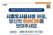 이런뉴스(e-runnews) 김삼성 기자 | 시흥도시공사는 10월 15일부터 11월 7일까지 ‘제6회 시흥도시공사 혁신·ESG경영 아이디어 공모전’을 개최한다. 이번 공모전은 공사의 주요 사업과 연계된 ‘디지털 기반 경영 구현’ 및 ‘지역상생‧협력’ 2개 분야로 진행되며, 공사에 관심 있는 시민 누구나 참여할 수 있다. 공모전 참가를 위해서는 공사 누리집 내 ‘혁신 아이디어 공모전’ 게시판에서 신청서를 내려받아 작성한 후 게시판 등록 또는 담당자 이메일로 제출하면 된다. 공사는 이번 공모전을 통해 시민의 시각에서 공사의 혁신 방향을 모색하고, 지역사회와의 상생을 강화하는 등 실질적 사업 발굴로 이어질 수 있도록 연계할 계획이다. 우수 아이디어로 선정된 제안은 최우수 1건(50만 원), 우수 1건(30만 원), 장려 2건(각 20만 원) 총 4건에 대해 온누리상품권이 수여되며, 선착순 참여자 5명과 일반 참여자에게도 추첨 이벤트를 통해 소정의 기프티콘을 제공할 예정이다. 자세한 사항은 공사 누리집을 통해 확인할 수 있다. 유병욱 사장은 “작은 아이디어 하나가 공사의 변화를 이끌 수 있다”며 “시민이