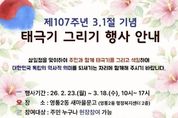 이런뉴스(e-runnews) 김삼성 기자 | 영통구 영통2동은 영통2동 새마을문고가 제107주년 3·1절을 맞아 지역 주민과 함께 독립운동의 뜻을 기리고 나라사랑의 의미를 되새기기 위한 ‘태극기 그리기’ 행사를 운영한다고 밝혔다. 이번 행사는 오는 3월 18일까지 매일 오전 10시부터 오후 5시까지 영통2동 새마을문고에서 진행되며, 전 연령대 누구나 현장 접수를 통해 참여할 수 있다. 참가자들은 직접 태극기와 무궁화를 그리며 3·1운동 정신을 생활 속에서 체험하는 시간을 갖는다. 제출 시 룰렛 돌리기를 통해 소정의 상품도 증정할 예정이다. 영통2동 새마을문고는 앞으로도 독서문화 활동과 연계한 다양한 생활문화 프로그램을 통해 주민 참여의 장을 넓히고, 지역의 역사·문화 가치를 함께 나누는 활동을 이어갈 계획이다.