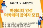 이런뉴스(e-runnews) 김삼성 기자 | 안성시는 지역사회 발전을 이끌 열정있고 능력있는 여성 지도자를 발굴·육성하기 위해 ‘2025년 안성시 여성리더 양성 아카데미’ 기본과정 교육 참가자를 모집한다. 이번 아카데미는 적극적으로 참여할 수 있는 여성 시민 누구나 신청할 수 있으며, 신청기간은 오는 10월 15일부터 시작된다. 교육은 11월 5일부터 12월 10일까지 6주간 매주 수요일에 안성시여성비전센터 (발화대길 25) 1층 공유오피스에서 진행 될 계획이다. 교육 내용은 ‘나는 당신이 행복했으면 좋겠습니다.’ 라는 주제로 김경희 강사의 행복소통 리더십 강의로 개강식을 열고 2~3주차는 감성을 담아 나를 알리는 SNS 활용법 이론편과 실습편, 4~5주차에는 나만의 비서 만들기 챗봇과 생성형 AI교육 이론편과 실습편을 구성하여 최신 트렌드에 맞춘 리더 역량 강화를 위한 강의들로 구성했으며 6주차에는 퍼실리테이션 기법을 활용하여 지역 내 현안 문제를 파악하고 리더로서 해결 방법을 제시하는 과정을 마지막으로 수료식을 가질 예정이다.