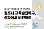 이런뉴스(e-runnews) 김삼성 기자 | 김포시의회는 김포시 교육발전특구의 추진 성과를 점검하고 향후 비전과 정책 방향을 모색하기 위해 오는 11월 4일 장기도서관 3층 다목적강당에서 정책토론회를 개최한다. 이번 토론회는 ‘김포시 교육발전특구, 성과에서 비전으로’라는 주제로, 지역 교육 관계자와 전문가, 시민이 함께 참여해 교육발전특구 추진 성과를 돌아보고, 미래 교육도시로의 발전 전략을 논의하기 위해 마련됐다. 주제 발제는 협성대학교 교육대학원 김성기 교수가 맡았으며, '김포시 교육발전특구 발전방향'에 대해 발표 후 토론이 진행된다. 토론 좌장은 김현주 의원(김포시의회), 패널로는 김지원 장학사(경기도김포교육지원청), 허철규 교장(마송중·고등학교), 오은화 팀장(김포시 교육문화국), 김민정 회장(김포시학부모회장협의회)이 참여한다. 김현주 의원은 “김포시가 3040 젊은 세대와 아동인구 비율이 높고 성장 잠재력이 높은 도시인 만큼, 교육이 도시 경쟁력의 핵심이 되어야 한다”며, “이번 토론회를 통해 김포형 교육발전특구가 실질적인 교육 혁신의 플랫폼으로 발전할 수 있도록 시민, 교육계, 행정이 함께 지혜를 모