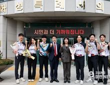 이런뉴스(e-runnews) 김삼성 기자 | 화성특례시의회는 2일, 지난 9월 개최된 ‘2025 동트는 동해컵 프로볼링대회’에서 개인전과 단체전을 석권한 팀 MK 글로리아 선수단을 초청해 간담회를 갖고 표창을 수여했다. 팀 MK 글로리아는 화성특례시에 연고를 둔 프로볼링팀으로, 가슴에 화성특례시 마크를 달고 전국 각지의 대회에 참가하며 시의 위상을 널리 알려왔다. 이번 대회에서는 ‘볼링의 신’으로 불리는 박경신 프로가 개인전 우승을 차지하고, 팀이 단체전 정상에 오르며 명실상부 대한민국 최강팀의 저력을 보여주었다. 현재팀에는 박경신, 윤명한, 김수용, 유상원, 이현우, 강민서 등 국내 최정상의 선수들이 소속되어 있으며, 국내외 대회에서 꾸준한 성과를 내고 있다. 이날 간담회에서 선수들은 “화성특례시 마크를 달고 전국 각지 대회를 다니다 보면 화성‘특례시’에 대한 질문을 자주 받는다. 자연스럽게 화성특례시를 알리고 있다는 사실이 뿌듯하다”라면서, “각종 매체를 통해 많은 시민 분들이 저희를 알아봐 주시고 응원의 메시지를 보내주시어 큰 힘이 된다”라고 소감을 밝혔다. 배정수 의장은 “선수들의 땀방울이 시민들의 자부심으로 이어졌다”라며, “오늘의 성취가 화성특례시