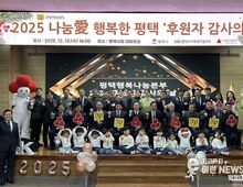 이런뉴스(e-runnews) 김삼성 기자 | 평택행복나눔본부는 평택시민들을 위해 꾸준히 후원해온 개인 및 기업(단체) 후원자에게 감사를 표하기 위해 지난 10일 ‘나눔愛 행복한 평택 후원자 감사의 날’을 개최했다. 이번 행사는 앙상블 US의 축하공연을 시작으로 2025년 한 해 동안 시민들과 함께한 다양한 모금·나눔 활동을 되돌아보는 영상 상영과 지속적으로 후원하신 개인·단체·기업의 공적을 기리기 위해 평택시장 표창, 나눔실천 감사패, ESG 나눔기업패를 전달하며, 수상자 28명을 비롯한 내빈 60여 명이 참석한 가운데 진행됐다. 끝으로 시립고덕하늘채시그니처어린이집(원장 손난희) 원아들이 축하공연을 선보였으며, 원아들이 만든 종이공예를 행사에 참석한 후원자들에게 직접 전달하며 행사가 따뜻하게 마무리됐다. 이성호 평택시 부시장은 “올 한 해 지역 곳곳에서 따뜻한 나눔을 실천하신 모든 후원자에게 진심으로 감사드린다”며 "2026년 새해에는 이웃사랑을 실천하는 후원자분들의 헌신과 사명에 부응해 평택시 곳곳에 소외된 분들이 생기지 않도록 노력하겠다”고 전했다. 경기 사랑의열매 홍승표 부회장은 “어려운 시기