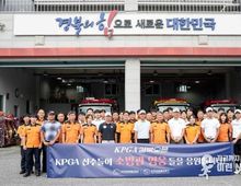 이런뉴스(e-runnews) 김삼성 기자 | KPGT가 ‘특별한 간식차’를 준비했다. KPGT는 경북 예천 소재 한맥CC H, M코스에서 개최되는 ‘KPGA 경북오픈’의 개막을 하루 앞둔 30일(화) 예천소방서에서 간식차를 운영했다. 이번 행사는 시민의 안전을 위해 불철주야 헌신하는 소방 공무원들에게 고마운 마음을 전하기 위해 마련됐다. 특히 예천소방서는 지난 3월 의성발 경북 산불 방어 활동에 큰 역할을 했다. 이날 간식차에서는 페스츄리 핫도그와 커피, 아이스티, 에이드를 비롯한 여러 음료가 소방 공무원들에게 제공됐다. KPGA 투어에서 활동하고 있는 대구, 경북 출신 선수들인 김대현(37.제노라인), 권성열(39), 조민규(37.우리금융그룹), 이창우(32.다누), 황도연(32.Mss), 최찬(28.(주)대원플러스그룹)도 예천소방서를 방문해 소방 공무원들에게 직접 간식을 전달하며 그 의미를 더했다. 소방 공무원들은 “뜻 깊은 자리를 마련해준 KPGT와 예천소방서를 찾아준 KPGA 투어 선수들 덕분에 힘이 난다”며 “격려에 감사하고 항상 소방 공무원의 역할에 최선을 다하겠다”고 말했다