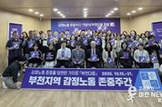이런뉴스(e-runnews) 김삼성 기자 | 부천시 일쉼지원센터는 지난 14일, 감정노동 존중 주간 부천다움 포럼과 기념식을 성공적으로 개최했다. 이번 행사는 ‘감정노동자 보호법’(산업안전보건법 제41조) 시행 7주년을 맞아, 감정노동 존중을 당연한 가치로 확산하기 위해 부천시 일쉼지원센터와 부천상공회의소, 한국노총 부천김포지역지부가 공동으로 추진했다. ▲ 부천다움 포럼 1부 부천다움 포럼에서는 ‘부천지역 가구 방문 노동자의 방문노동 실태’(윤태영, 불평등과 시민성 연구소 연구원), ‘감정노동존중 부천시민다움’(김숙희, 부천시 일쉼지원센터 총괄팀장)의 주제 발표가 있었으며, 이어서 가구 방문 감정노동 현장과 감정노동, 감정노동과 시민성에 관한 지정토론이 이어졌다. ▲ 기념식 2부 기념식은 환영인사, 감정노동 존중주간 선포, 존중시민 감사장 전달 순으로 진행됐다. 감정노동 존중 주간을 노사가 함께 운영하는 기관들과 함께 감정노동 존중주간을 선포하고 이후 이어지는 일주일 동안 ‘감정노동 존중을 확산하기 위한 실천에 함께 하기로 약속했다.(부천도시공사, 부천문화재단, 부천여성청소년재단, 한국