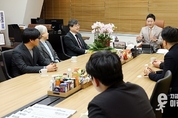 이런뉴스(e-runnews) 김삼성 기자 | 경기도의회 김진경(더불어민주당·시흥3) 의장이 4일 집무실에서 경기지역 5개 야당 대표들과 만나 기초의원 선거구 획정 문제에 관한 의견을 나누었다. 기초의원 선거구 획정은 단순한 경계 설정을 넘어, 지역 주민들의 의사 반영과 정치 다양성 확대라는 지방자치 근본 가치를 담보하는 핵심 의제로 자리매김하고 있는 가운데 이번 면담은 다가오는 지방선거를 앞두고 선거구 획정 제도에 대한 개선 요구가 제기되면서 만들어진 자리였다. 이날 기본소득당, 사회민주당, 정의당, 조국혁신당, 진보당 등 5개 야당은 2인 선거구 제도가 소수 정당과 신생 정치세력의 의회 진입을 막아 시민의 선택권을 제한해 왔다며 폐지를 강하게 촉구한 데 이어 “시민 표가 사표가 되지 않고, 고르게 반영되는 기초의회 구성이 지방자치의 민주성과 신뢰 회복을 위한 최소한의 조건”이라고 건의했다. 이에 대해 김진경 의장은 “선거구 획정은 지방자치 대표성에 직접 연결되는 중대한 사안”이라며 “제기된 의견을 무겁게 받아들이고 향후 도의회 차원에서 심도 있게 검토하겠다”고 밝혔고 또한 “심의 과정에서 이 의견들이 적극 참고되어 균형 잡힌 결론에 반영되도록 노력할 것”이