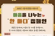 이런뉴스(e-runnews) 김삼성 기자 | 시흥시장곡종합사회복지관은 연말을 맞아 지역사회에 따뜻한 마음을 전하기 위한 ‘마음을 나누는 한 마디’ 캠페인을 진행한다. 이번 캠페인은 이웃을 향한 응원의 말, 위로의 말, 사랑의 말을 담은 짧은 문장을 시민들로부터 응모 받아 서로에게 위로와 용기를 건네는 나눔의 장을 만들기 위해 마련됐다. 참여자는 직접 창작한 문장 또는 문학 작품 속 인용문 중 마음을 전하고 싶은 한 문장을 제출할 수 있다. 응모 기간은 11월 3일부터 11월 14일까지이며, 시흥시민이라면 누구나 참여할 수 있다. 참여 방법은 시흥시장곡종합사회복지관 1층 복도 현장 신청 또는 온라인으로 하면 된다. 선정된 문장은 내부 심사를 거쳐 캘리그래피 작품으로 제작되며, 오는 12월 시흥시장곡종합사회복지관 복도갤러리에서 전시된다. 전시된 작품은 시민들에게 한 해를 따뜻하게 마무리할 수 있는 작은 위로의 메시지로 전달될 전망이다. 시흥시장곡종합사회복지관 관계자는 “짧은 문장이지만, 시민 한 사람 한 사람의 따뜻한 마음이 모여 이웃에게 큰 위로가 될 것”이라며 “많은 시민이 이번 캠페인에 참여해 따