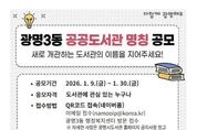이런뉴스(e-runnews) 김삼성 기자 | 광명시가 광명3동 새 도서관의 이름을 지어줄 주인공을 찾는다. 시는 올해 10월 개관 예정인 ‘광명3동 공공도서관’ 명칭 공모를 9일부터 30일까지 22일간 진행한다고 9일 밝혔다. 광명3동 공공도서관은 광명3동 공공복합청사(광명동 104-9) 내 지상 5~6층에 연면적 1천600㎡ 규모로 조성ᅟᅡᆫ다. 어린이·종합 자료실을 비롯해 실감 놀이터, 어린이 창작공간, 강의실, 동아리실 등 전 세대가 함께 이용할 수 있는 복합문화공간으로 운영할 예정이다. 이번 명칭 공모는 도서관이 시민의 일상과 가장 가까운 생활 문화공간으로 자리 잡을 수 있도록, 공간의 성격과 가치를 잘 담아내면서도 모두에게 친숙한 이름을 찾기 위해 마련했다. 명칭의 적합성, 창의성, 대중성 등을 종합적으로 평가해 최우수상 1건(10만 원), 우수상 1건(7만 원), 장려상 1건(5만 원)을 선정하고, 온누리상품권으로 시상할 계획이다. 선정 결과는 오는 2월 중 광명시도서관 누리집에서 공개한다. 명칭 공모는 도서관에 관심 있는 누구나 참여할 수 있다. 온라인 양식을 작성해 제출하