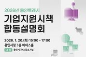 이런뉴스(e-runnews) 김삼성 기자 | 용인특례시는 오는 20일 오후 3시 시청 에이스홀에서 ‘2026년 중소기업 지원시책 합동설명회’를 개최한다고 9일 밝혔다. 이번 설명회는 자금‧수출‧연구개발 등 다양한 중소기업 지원 정책 정보를 안내하고, 기업들이 이를 효율적으로 이용할 수 있도록 하고자 마련됐다. 시는 용인시산업진흥원과 금융지원, 기업환경 개선, 해외판로 개척, 기술지원 등 올해 지원사업 내용을 설명한다. 중소벤처기업진흥공단, 기술보증기금, 경기신용보증재단, 소상공인시장진흥공단 등 4개 기관은 기업 운용에 도움이 되는 자금과 금융 지원책을 소개한다. 경기도경제과학진흥원, 경기테크노파크, 경기지방중소벤처기업청 등 3개 기관은 해외시장 판로 개척, 연구개발(R&D) 지원사업 등을 설명한다. 설명회 후엔 이들 기관과 별도 부스에서 기업인과 맞춤형 상담도 할 예정이다. 참여를 원하면 오는 20일까지 시 홈페이지나 용인기업지원시스템을 통해 신청하면 된다. 당일 현장 신청도 가능하다. 자세한 사항은 용인기업지원시스템 용인시소식을 참고하거나 용인시 기업지원과로 문의하면 된다