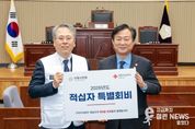 이런뉴스(e-runnews) 김삼성 기자 | 구리시의회가 1월 15일 구리시의회 의장실에서 대한적십자사 경기지사에 2026년도 적십자 특별회비를 전달하며 어려운 이웃을 위한 따뜻한 나눔 활동에 동참했다. 이날 전달식에는 신동화 의장, 대한적십자사 우광호 사무처장, 대한적십자사봉사회 경기도협의회 함정현 부회장, 대한적십자사봉사회 구리지구협의회 김복조 회장 등 10여 명이 참석했다. 구리시의회는 복지 사각지대에 놓인 취약 계층을 지원하고 긴급재난구호와 공공의료, 국제 협력 등 적십자사의 다양한 인도주의 활동에 동참하기 위해 매년 적십자 특별회비를 전달하고 있다. 신동화 의장은“어려운 여건 속에서도 취약 계층에 대한 지원과 봉사 활동으로 어려운 이웃들에 큰 희망이 되어주고 있는 대한적십자사의 노고에 깊은 감사를 드리며, 새로운 희망과 꿈을 꿀 수 있도록 도움이 필요한 곳에 등불이 되어주시길 바란다.”라며, “구리시의회도 지역사회에 따뜻한 나눔의 문화가 확산될 수 있도록 적극 노력할 것이며, 저도 의장으로서 또 적십자 회원으로서 인도, 공평, 중립, 독립, 자발적 봉사, 단일, 보편이라는 적십자 정신이 온 사회에 실현
