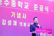 이런뉴스(e-runnews) 김삼성 기자 | 의왕시 백운밸리 지역에 신설된 백운호수중학교의 준공식이 24일 백운호수중학교 체육관에서 개최됐다. 의왕백운프로젝트금융투자(주)(의왕백운PFV(주)) 주최로 열린 이날 준공식에는 김성제 의왕시장, 임태희 경기도 교육감, 김학기 의왕시의회 의장과 도·시의원, 의왕백운피에프브이(주) 김양묵 대표이사, 의왕백운밸리에이엠시(주) 이성훈 대표이사 등 주요 내빈과 지역주민 400여 명이 참석해 자리를 빛냈다. 이번 준공식은 학교 설립을 위해 힘써 온 관계자와 지역 주민들이 한 자리에 모여 그동안의 결실을 함께 나누고 축하하는 뜻깊은 행사로 마련됐다. 의왕시 백운밸리 일대는 주거단지 조성과 함께 인구가 지속적으로 증가하고 있는 지역으로, 그간 중학교 부재에 따른 학생들의 원거리 통학 문제가 꾸준히 제기돼 왔다. 이에, 시는 ‘중학교 신설’이라는 지역 숙원사업 해결을 위해 다각적인 방안을 검토해 왔으며, 2023년 11월 의왕시·군포의왕교육지원청·의왕백운피에프브이(주) 간 3자 업무협약을 체결함으로써 학교 설립이 본격 추진됐다. 협약을 통해 시에서는 백운호수