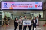 이런뉴스(e-runnews) 김삼성 기자 | 올릭스(주)가 “아동 양육시설에 전달해 달라”며 수원시에 성금 2104만 원을 기부했다. 올릭스 이동기 대표이사, 강충길 사장은 18일 수원시청을 방문해 김은주 여성가족국장에게 성금을 전달했다. 올릭스는 2020년부터 2023년까지 수원시 아동양육시설에 꾸준히 성금을 후원했다. 지금까지 기부 금액이 총 6800만 원에 이른다. 기부금은 직원들의 자발적 모금과 회사 후원금으로 마련했다. 수원시는 경기사회복지공동모금회 지정기탁 방식으로 경동원, 동광원, 꿈을키우는집, 수원나자렛집 등 아동 양육시설 4개소에 성금을 배분할 예정이다. 이동기 올릭스 대표이사는 “양육시설에서 사는 아동들이 따뜻한 겨울을 보내길 바라며 후원금을 준비했다”며 “아이들이 꿈을 꾸며 자라는 수원시가 됐으면 한다”고 말했다. 올릭스는 RNA 간섭 플랫폼 기술을 기반으로 다양한 질환에 대한 제3세대 혁신 신약을 개발하는 기업이다. 2020년 12월 ‘혁신형 제약기업’(보건복지부) 인증을 받았고, 2022년에는 ‘우수기업연구소’(과학기술정보통신부 주관)로 선정됐다.