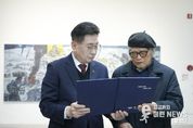 이런뉴스(e-runnews) 김삼성 기자 | 원로작가 이동표 화백의 작품 기증식이 지난 23일 오전 11시 20분 양평군립미술관 지하 전시장에서 진행됐다. 기증식에서는 전진선 양평군수가 기증증서를 수여했으며, 이어 작가의 작품 설명과 전시 관람이 진행됐다. 기증 작품은 양평군립미술관 수장고에 보관되며, 군립미술관 기획 전시를 비롯해 향후 국제평화공원 및 양평박물관 개관 시 활용될 예정이다. 기증 작품은 '양평군 지평면 지평리 전투 대승하다'(356×132㎝, 2010년)로, 양평군립미술관 2025년 겨울 기획 전시 '전쟁과 평화, 삶의 서사' 출품작이다. 이동표 화백은 1932년 황해도 해주 출신의 실향민으로, 고향 상실의 기억과 향수를 작품 세계의 정서적 기반으로 삼아왔다. 1994년 양서면 복포리에 입향한 이후 지역을 기반으로 왕성한 창작 활동을 이어오며, 양평 미술계의 원로로서 지역의 정체성 형성과 미술 문화 발전에 꾸준히 기여해 왔다. 그의 작품은 잃어버린 고향에 대한 기억과 그리움을 서정적으로 표현하고, 개인의 체험을 시대적 기억으로 확장해 온 것이 특징이다 전진선 양평군수는 “지평리 전투의 상징적인