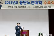 이런뉴스(e-runnews) 김삼성 기자 | 화성특례시의회는 2일, 동탄노인회관에서 열린 ‘동탄노인대학 수료식’에 참석하여 교육과정을 성실히 이수한 어르신들의 뜻깊은 결실을 축하했다. 이날 수료식에는 배정수 의장을 비롯해 이은진·이해남 의원이 참석했고, 노인대학 관계자와 수료 노인 대학생 등 150여 명이 참석해, 한 해 동안 이어진 배움과 소통의 여정을 함께 돌아봤다. 배정수 의장은 “오늘 수료식은 단순한 마침을 넘어서 더 건강하고 존엄한 노년의 삶을 향한 또 하나의 출발점”이라며 “우리 시의원들이 오늘 졸업하는 어머님, 아버님의 든든한 아들이자 딸이 되어 아름다운 동행에 언제나 함께하겠다”고 감사와 축하의 마음을 전했다. 한편, 동탄노인대학은 노년층 건강 증진과 평생학습 기회 확대를 위해 운영되고 있으며, 교양 교육·건강 프로그램·여가 활동 등 다양한 과정이 마련되어 있다. 특히 정서적 교류와 사회적 연결망 형성을 돕는 데 큰 역할을 해 지역사회 노인 복지 증진에 기여했다. 단체 관계자는 “기관 운영 과정에 대한 모니터링 결과 어르신들의 참여율이 높았을 뿐만 아니라 프로그램 만족도 역시 매우 높