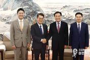 이런뉴스(e-runnews) 김삼성 기자 | 김동연 경기도지사는 26일 중국에서의 마지막 공식 일정으로 장쑤(江蘇)성 신창싱(信長星) 당서기와 만나 경제와 기후 등 분야별 협력을 강화하기로 했다. 오늘 행사는 양측 친선결연 1주년을 맞아 마련됐다. 앞서 경기도와 장쑤성은 지난해 6월 수원 도담소에서 친선결연 양해각서(MOU)를 체결한 바 있다. 먼저 인사말을 한 신창싱 당서기는 “시진핑 주석과 이재명 대통령의 정상통화에서 양국이 수교초심으로 돌아가 전략적 협력동반자 관계를 더 높은 수준으로 발전시키기로 했다”면서 “양국 정상들이 방향 정확히 잡아주셨으니 장쑤성과 경기도의 교류를 업그레이드하자”고 말했다. 이미 김동연 지사는 이번 중국 출장 의미를 “이재명 국민주권정부가 새로 들어서 정상화되고 있는 외교를 경기도가 공공외교로 뒷받침해주는 데 가장 큰 의미가 있다”고 밝힌바 있다. 김동연 지사는 “한국과 중국은 오랜 친구이지만 최근 몇 년동안 다소 힘든 시기를 보냈다. 하지만 이재명 대통령이 취임하면서 바람직한 한중관계의 장이 열릴 기반이 마련됐다”면서 신 당서기의 제안에 화답했다. 그러곤 한걸음 더