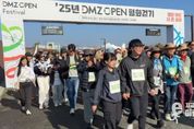이런뉴스(e-runnews) 김삼성 기자 | 경기도 파주 임진각 평화누리 일원에서 비무장지대(DMZ) 일원을 걷고 달리며 생태·평화·역사의 가치를 몸으로 느끼는 이틀간의 축제가 펼쳐졌다. DMZ OPEN 페스티벌(Festival)의 대표 스포츠 프로그램으로 1일에는 ‘2025 DMZ OPEN 평화걷기’가 2일에는 ‘2025 DMZ OPEN 평화 마라톤’이 개최됐다. 첫째 날 진행된 ‘DMZ 평화 걷기’는 민통선 내 임진강변 생태탐방로를 따라 걸으며 생태적 가치와 평화의 의미를 직접 체험하는 행사로, 올해는 야니스 베르진슈(Janis Berzins) 주한 라트비아 대사를 비롯해 13개국 주한 외국대사, 독립유공자 후손, 최재천 D.O.F.조직위원장 등 약 1,500여 명이 함께했다. 개막식에서는 경기도 홍보대사로서 활동중인 김규리를 비롯한 참가자 대표 6명이 무대 앞에서 릴레이 형식으로 평화 메시지를 낭독할 때마다, 참가자 전원이 “DMZ는 평화다”라고 화답하는 도민 참여 이벤트가 펼쳐져 현장의 열기를 더했다. 이어 김대순 행정2부지사의 힘찬 타고(타북)로 평화를 기원하며 걷기를 시작했다. 참가자들은