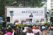 이런뉴스(e-runnews) 김삼성 기자 | 고양시원흥종합사회복지관은 지난 18일, 도래울마을1단지 중앙공원에서 개관 10주년 기념행사 ‘함께한 우리, 함께한 10년’을 1,000여 명의 주민이 참여한 가운데 성황리에 마무리했다. 이번 행사는 복지관과 함께 도래울마을1단지 내에서 공동체를 이루어온 원흥도래울마을1단지관리사무소와 고양시립원흥어린이집이 협력해 준비했으며, 복지관과 함께해온 지역주민과 자원봉사자, 후원자들에게 감사의 마음을 전하고, 이웃 간 소통과 화합을 도모하기 위해 마련됐다. 다인예술단의 신나는 고고장구와 고양시립합창단의 식전 공연으로 화려하게 막을 올린 이번 행사에는 이동환 고양특례시장, 김성회 국회의원, 경기도와 고양특례시의회 의원, 유관기관 단체장 등 많은 내빈들이 참석해 축하를 전했다. 이어 진행된 표창 수여식에서는 복지관과 함께한 자원봉사자와 후원자들이 감사패를 받았으며, 비전 선포식과 후원 전달식을 통해 앞으로의 10년을 향한 새로운 다짐을 공유했다. 2부 순서에서는 복지관 프로그램 참여자들이 직접 준비한 ▲줌바댄스 ▲합창 ▲하모니카 공연 등 다채로운 무대가 펼쳐져 관객들의