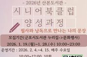 이런뉴스(e-runnews) 김삼성 기자 | 군포시산본도서관은 2026년에도 관내 시니어들에게 책을 통해 서로 소통하고 공감하는 능동적 독서교육 프로그램인 ‘시니어 북클럽 양성 과정’을 운영한다고 밝혔다. 이번 교육은 2월 4일부터 4월 15일까지 매주 수요일 오전 10시부터 12시까지 총 10주차로 진행되며 북클럽 운영을 위한 운영법, 글쓰기 방법, 주제도서의 낭독과 필사 등에 대해 교육하여 시니어 독서동아리로 자발적인 활동을 할 수 있도록 실전교육 위주로 진행된다. 산본도서관에서 2025년도에 ‘낭독과 필사로 떠나는 글쓰기 여행’ 수업을 맡았던 최선화 강사가 진행하며 도서관은 교육 기간 중, 신규 시니어 독서동아리를 모집 및 결성하여 지속적인 독서 모임 활동을 지원할 계획이다. 함께 글쓰기 및 독서에 관심있는 관내 55세 이상 시니어라면 누구나 신청 가능하며, 1월 19일부터 선착순으로 20명을 모집한다. 신청은 군포시도서관누리집 문화행사신청 또는 전화 접수가 가능하다. 하은호 군포시장은 “앞으로 산본도서관이 시니어 세대가 책으로 하나 되는 소통공간이 될 수 있도록 다양한 독서교육 프로그램을 운