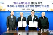 이런뉴스(e-runnews) 김삼성 기자 | 파주시가 율곡 이이 선생의 학문과 철학을 체계적으로 계승하기 위해 추진 중인 ‘율곡문화진흥원’설립을 위해 지난 6일 율곡 선생의 후손인 덕수 이씨 종중과 업무협약을 체결했다. 파주시장 접견실에서 치러진 이날 협약식 현장에는 김경일 파주시장을 비롯한 파주시 관계자들과 덕수 이씨 대종회, 덕수 이씨 찬성공파 종회를 대표하는 인사와 율곡 선생의 종손이 참석해 율곡문화진흥원 설립 추진을 위한 상호 간 협력을 다짐했다. 협약의 주요 내용으로는 율곡문화진흥원 건립부지 확보 상호협조, 율곡문화진흥원 설립 기본계획 및 추진방향에 대한 협력, 율곡이이 선생 관련 종중 보유 역사·문화자료 제공, 사업 추진에 필요한 협력체계 구축 등이다. 김경일 파주시장은 “이번 협약은 율곡 선생의 정신을 현대적으로 계승하고, 파주시를 대표하는 역사·문화 자산을 체계적으로 발전시키는 중요한 출발점”이라고 강조하며 “율곡문화진흥원이 학술과 교육, 문화가 융합된 거점시설로 자리매김할 수 있도록 율곡 종중과의 협력에 최선을 다하겠다”라고 말했다. 율곡 종중 관계자 역시 “율곡 선생의 사상과 업적