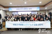 이런뉴스(e-runnews) 김삼성 기자 | 연천군시설관리공단은 2025년 12월 31일 무분규·무분쟁 21주년을 기념하여 노사 상생 공동 선언식을 개최했다. 이번 선언식은 공단 노사협의회 설립 이후 21년간 단 한 차례의 분규나 분쟁 없이 유지해 온 안정적인 노사관계의 성과를 공유하고, 상생과 협력을 기반으로 한 지속가능한 노사문화 정착 의지를 다짐하기 위해 마련됐다. 이날 행사에는 공단 임직원이 참석한 가운데, 이사장과 근로자대표가 공동 선언문에 서명하고 이를 함께 낭독하며 신뢰·존중·협력을 핵심 가치로 하는 노사관계 실천 의지를 재확인했다. 노사는 선언문을 통해 ▲상호 역할과 가치를 존중하는 노사관계 구축 ▲공정하고 투명한 소통을 통한 신뢰 강화 ▲상생과 협력에 기반한 지속가능한 경영 실천 ▲공공기관으로서 모범적인 노사문화 확산에 적극 협력할 것을 약속했다. 연천군시설관리공단 이사장은 “21년 연속 무분규·무분쟁이라는 성과는 노사가 서로를 존중하며 신뢰와 소통을 지속해 온 결과”라며, “앞으로도 상생과 협력을 바탕으로 안정적인 근무환경을 조성하고, 군민에게 신뢰받는 공공서비스 제공에 최선을 다하겠다”고 밝혔다. 이어