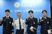 이런뉴스(e-runnews) 김삼성 기자 | 파주소방서는 오는 6일 파주소방서 본서 서장실에서 근속승진 대상자 3명에 대한 계급장 수여식을 열었다. 이번 수여식은 소방위로 승진한 박삼진, 정찬희, 이재훈 소방공무원에게 계급장을 전달하며 그간 노고를 치하하고 앞으로의 책임을 강조하기 위한 자리였다. 수여식에는 해당 승진자 외에도 서장, 각 과장, 동료 소방공무원들이 참석해 축하와 격려를 전했다. 특히 승진자들이 그동안 현장에서 이룬 업무 성과와 전문성, 동료애를 소개하며 박수로 격려하는 시간이 마련됐다. 승진자들은 화재 진압·구조·구급 등 최일선 현장에서 시민의 생명과 안전을 지키는 임무를 수행하게 된다. 김명찬 파주소방서장은 “오늘 승진은 단지 직책이 바뀌는 것이 아니라 그동안의 헌신과 전문성이 인정받은 결과다”며 “시민의 안전을 위해 묵묵히 소임을 다해온 여러분께 감사드리며, 책임과 역할이 한층 더 커진 만큼 소방대원으로서의 사명감과 자부심을 갖고 현장에서 최선을 다해주기 바란다”고 당부했다.