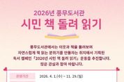 이런뉴스(e-runnews) 김삼성 기자 | 김포시 풍무도서관은 오는 4월부터 ‘2026년 시민 책 돌려 읽기’ 독서 릴레이를 운영한다. 이웃과 책을 돌려 읽으며 자연스럽게 책 읽는 도시 문화를 만들자는 취지로 기획된 이 사업은 2007년부터 시작되어 현재까지 매년 운영되고 있다. 올해 ‘시민 책 돌려 읽기 지정 도서’는 총 100권으로 국내외 수상 도서를 비롯해 국립중앙도서관 등 관계 기관 추천 도서, 서점 베스트셀러, 신간 도서 가운데 선정됐다. 4월 1일부터 풍무도서관 1층 통합데스크로 방문해 1인당 최대 2권까지 대출할 수 있으며, 대출한 도서는 2주 이내에 읽은 후 이웃에게 전달하거나 풍무도서관으로 반납하면 된다.