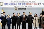 이런뉴스(e-runnews) 김삼성 기자 | 화성특례시의회 '동탄 유통3부지 개발 갈등조정 특별위원회'는 17일 의회 대회의실에서 동탄 유통3부지 개발과정 협의추진 촉구결의를 진행했다. 이번 촉구결의에서는 특별위원회가 공식적으로 구성되어 활동 중인 상황에서, 유통3부지 개발과 직결된 주요 안건이 사전 설명이나 협의 없이 도시계획심의위원회에 제출된 데 대한 문제의식을 공유하고, 향후 합리적인 협의 절차의 필요성을 분명히 하기 위해 마련됐다. 이날 촉구결의에서 특별위원회는 ▲도시계획심의위원회 안건 제출 경위에 대한 집행부의 공식적이고 신속한 설명 ▲유통3부지와 관련된 모든 주요 행정 절차에 대해 특별위원회와의 사전 보고 및 협의 이행 ▲의회를 단순한 추인 기구로 인식하는 행정 관행을 개선하고 협치 원칙을 존중할 것을 촉구했다. 특히, 특별위원회가 갈등 해소를 위한 공론의 장으로서 실질적인 기능을 하기 위해, 향후 사업 추진 과정 전반에서 의회와의 긴밀한 소통과 충분한 협의가 반드시 전제되어야 한다는 점을 강조했다. 공동위원장단(김상수‧김영수‧전성균)은 한목소리로 “동탄 유통3부지 개발은 지역 주민의 생