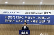 이런뉴스(e-runnews) 김삼성 기자 | 학교 현장 전문가 박효진 경기도교육감 예비후보가 18일 오전 기자회견을 열고 “비정규직 ZERO, 학교부터 시작하겠다”며 학교 내 노동 차별 해소를 핵심으로 한 노동정책을 발표했다. 이날 박 예비후보는 “학교는 아이들에게 사회의 가치를 가르치는 공간”이라며 “노동의 가치와 인간 존중을 가르치기 위해서는 학교 내 노동 차별부터 반드시 해소돼야 한다”고 강조했다. 그는 “노동이 존중되지 않는 교육은 결코 좋은 교육이 될 수 없다”며 “학교를 차별이 아닌 평등의 공간으로 바꾸겠다”고 밝혔다. 이날 발표된 정책은 교사와 교육공무직, 비정규직 노동자 전반을 아우르는 구조 개선에 초점이 맞춰졌다. ▷ “교사도 노동자”…노동기본권 보장 제도화 박 예비후보는 교사의 노동기본권 보장을 위한 제도 개선을 핵심 과제로 제시했다. 노동조합과의 정책 협의를 제도화하고 단체협약 이행 점검을 강화하는 한편, 교사 노동환경 실태조사를 정례화하겠다고 밝혔다. 또한 노동기본권과 정치기본권 확대를 위한 사회적 논의도 추진하겠다고 덧붙였다. ▷ 교육 노동환경 전면 개선…“현장부터 바꾼다” 교육공무직을 포함한 교육 노동자의 권리 보호와 근무환경 개선